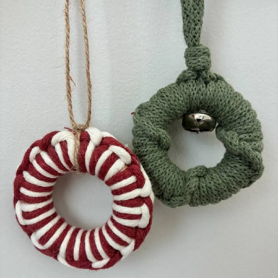 You'll receive an introduction to ornament making, learn multiple macrame knots and techniques, and create your very own custom set of 5-8 holiday ornaments.
